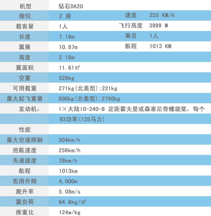 鑽石DA20(英語:Diamond DA20)是一(yī)款由鑽石飛行器(qì)公司的設計生(shēng)産的小型飛機,可載兩人(rén),主要用作(zuò)飛行訓練和私人(rén)飛行。鑽石DA20采用控制杆,複合構造,泡型艙罩,低(dī)單翼,單油 箱和T型尾翼。所有型号的機體(tǐ)都采用複合材料碳纖維強化(huà)塑料和玻璃鋼。飛機兩側的小窗口在地面或飛行期間(jiān)能(néng)夠打開,用作(zuò)通風(fēng)。泡型艙罩設計的缺點是使機艙 有太多不必要的太陽光,導緻機艙溫度上(shàng)升。座位可調較後躺,但(dàn)座位位置不能(néng)調較,取而代之是可調較的方向舵踏闆以符合飛行員(yuán)的身(shēn)高。固定座椅能(néng)為(wèi)飛行員(yuán)提 供更好(hǎo)的撞擊保護。