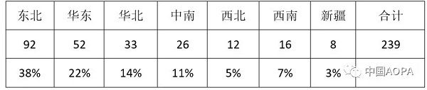 表1全國頒證通用機場(chǎng)按照地區分(fēn)布統計表