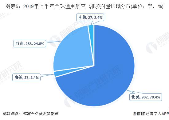 根據美國通用航空制造商(shāng)協會的統計數據,2019年上(shàng)半年,全球通用航空飛機交付量1139架,其中北美地區交付量為(wèi)802架(美國為(wèi)747架),占全球通用航空飛機交付量的70.4%,歐洲交付量為(wèi)283架,占24.8%,而包括亞洲在内的全球其他地區僅占2.4%。