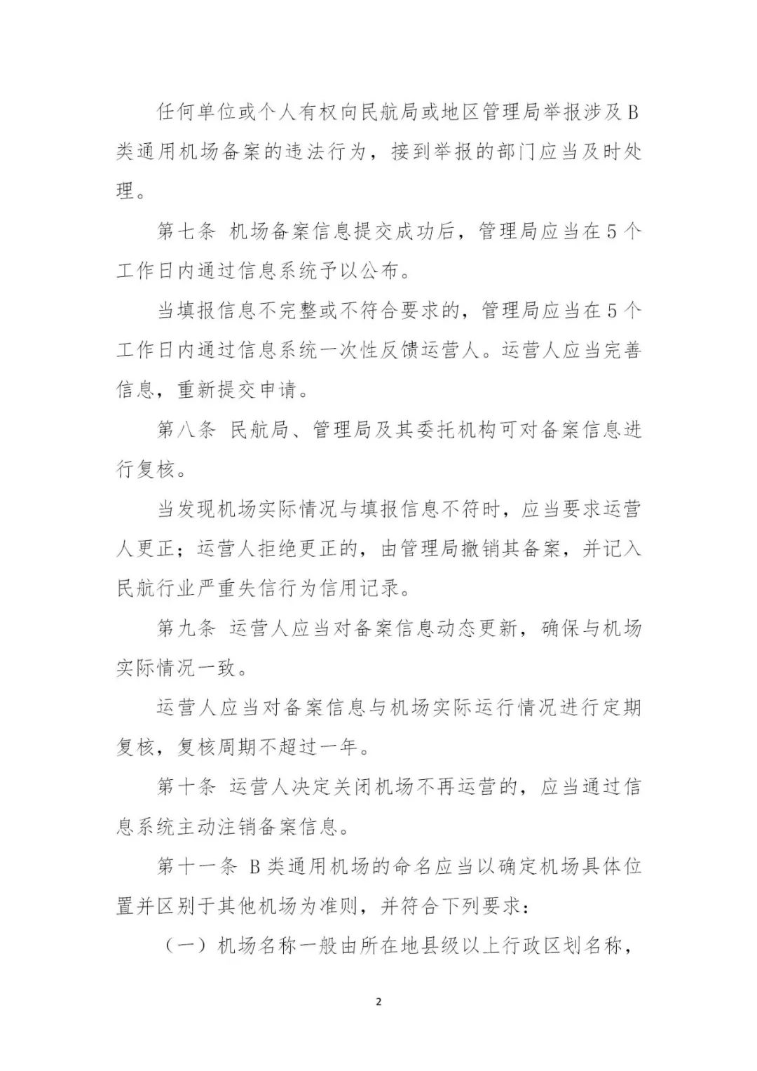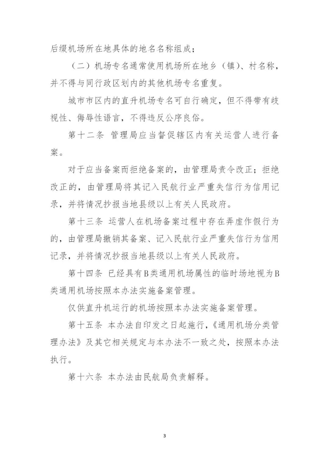 二、符合本辦法規定、已取得許可的機場(chǎng)應當于2020年2月(yuè)20日前按照本辦法要求在通用機場(chǎng)管理(lǐ)信息系統中提交并完善機場(chǎng)名稱(機場(chǎng)名稱不符合本辦法相關(guān)要求的機場(chǎng)名單詳見附件)、運營人(rén)信息和機場(chǎng)資料等相關(guān)信息,并将使用許可證交回所在地民(mín)航地區管理(lǐ)局。現(xiàn)有B類通用機場(chǎng)使用許可證和直升機場(chǎng)使用許可證應當于2020年2月(yuè)21日前予以注銷。
