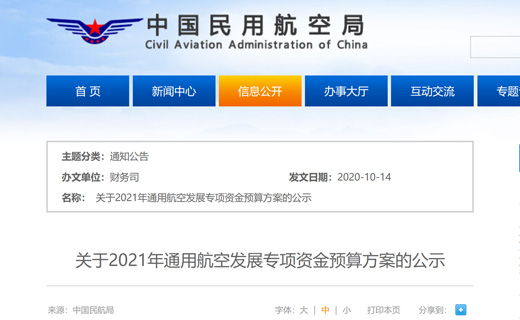 根據《通用航空發展專項資金(jīn)管理(lǐ)辦法》(民(mín)航發〔2012〕111号),以通航企業相關(guān)生(shēng)産統計數據及飛行員(yuán)執照培訓情況為(wèi)依據,提出2021年通用航空發展專項資金(jīn)預算(suàn)方案,現(xiàn)予以公示。公示期自2020年10月(yuè)14日至2020年10
