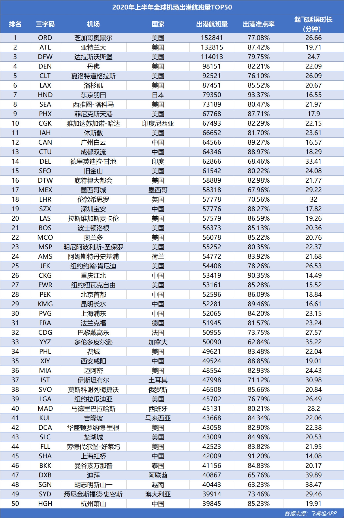 2020年上(shàng)半年受全球疫情的影響,全球機場(chǎng)航班量驟降。根據飛常準大數據顯示,2020年上(shàng)半年全球機場(chǎng)實際出港航班量約970萬架次,同比下(xià)降46.63%;出港準點率為(wèi)83.97%,同比提升11.31%。