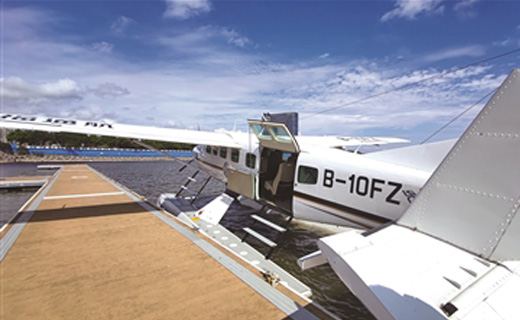 可從陸地起飛,也(yě)可在水上(shàng)降落。11月(yuè)1日,一(yī)架固定翼飛機塞斯納208BEX,從建德千島湖通用機場(chǎng)起飛,70分(fēn)鍾到達上(shàng)海。